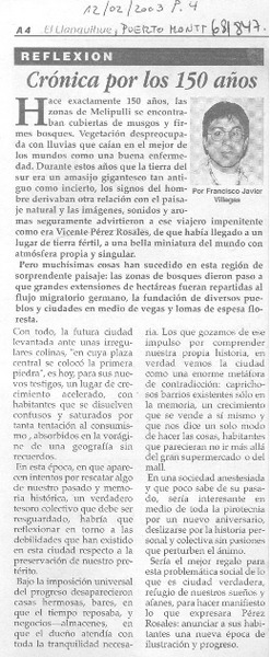 Crónica por los 150 años [artículo] Francisco Javier Villegas.