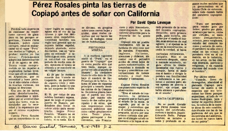 Pérez Rosales pinta las tierras de Copiapó antes de soñar con California [artículo] David Ojeda Leveque.