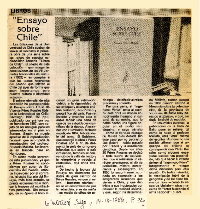 "Ensayo sobre Chile" [artículo].
