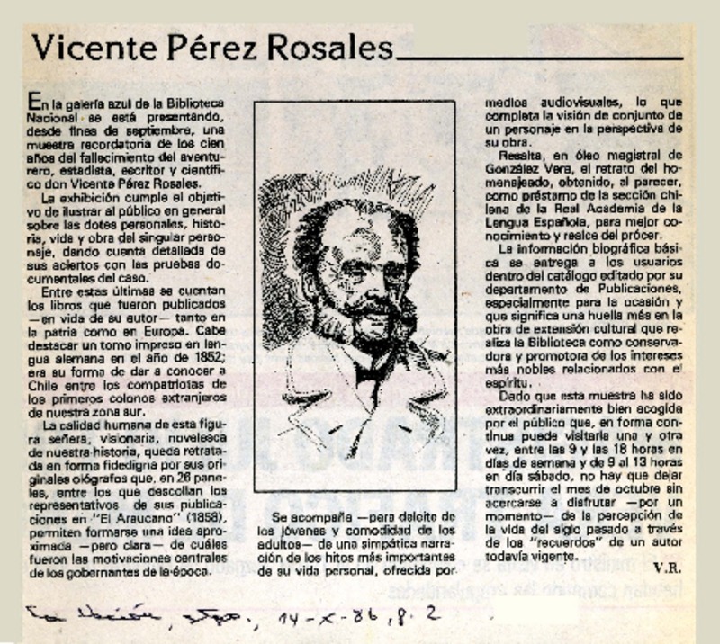 Vicente Pérez Rosales [artículo] V. R.