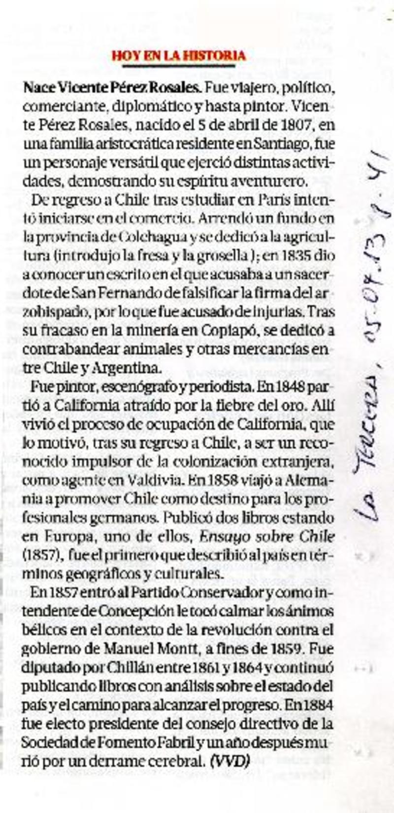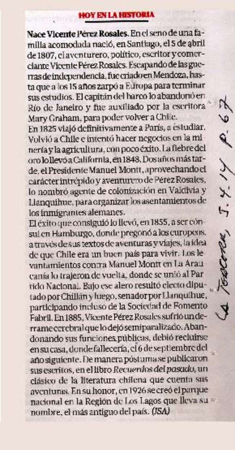 Nace Vicente Pérez Rosales [artículo] JSA