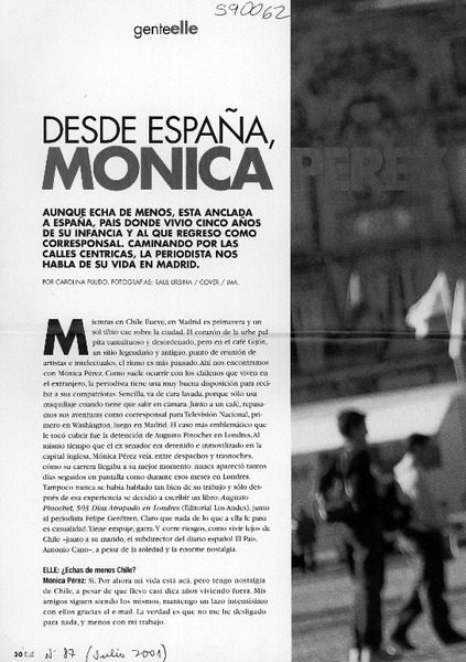 Desde España, Mónica Pérez [artículo] Carolina Pulido