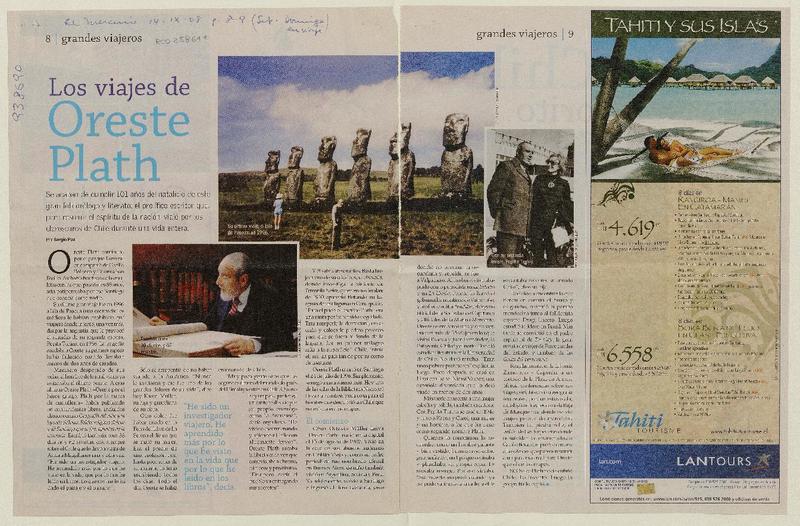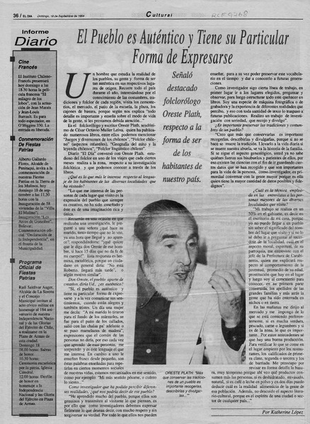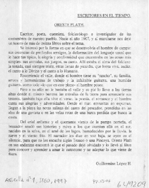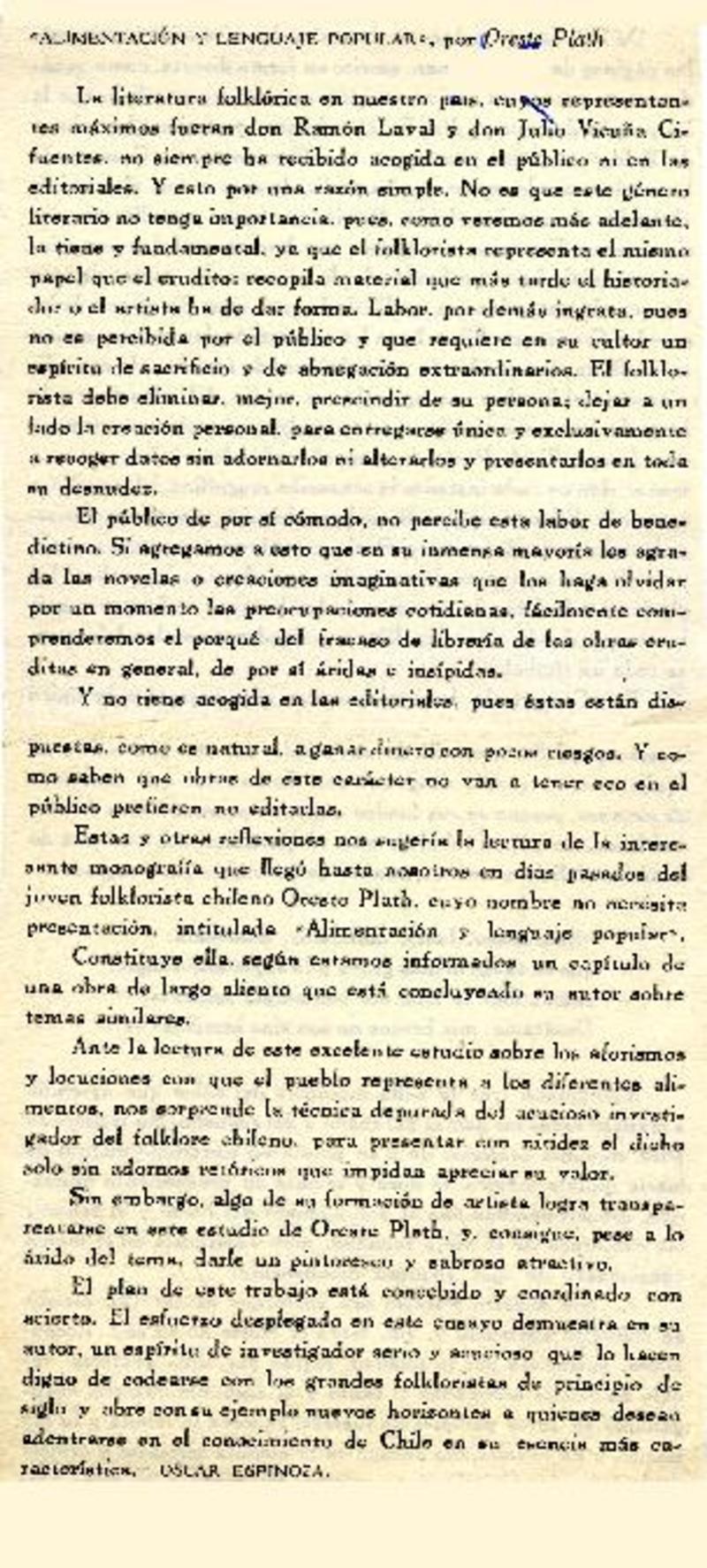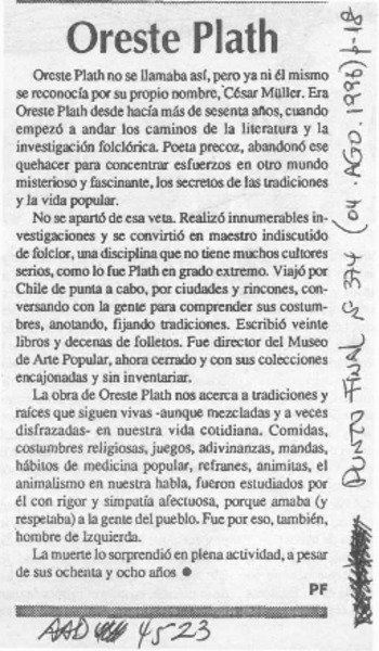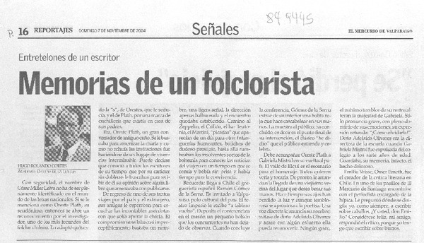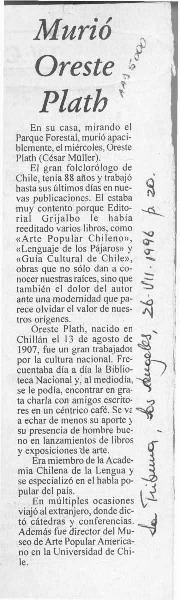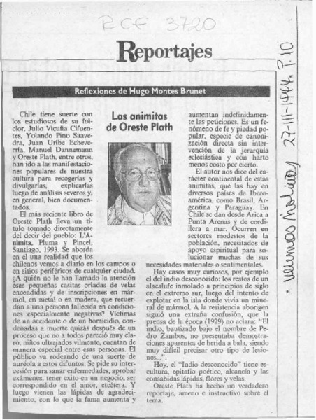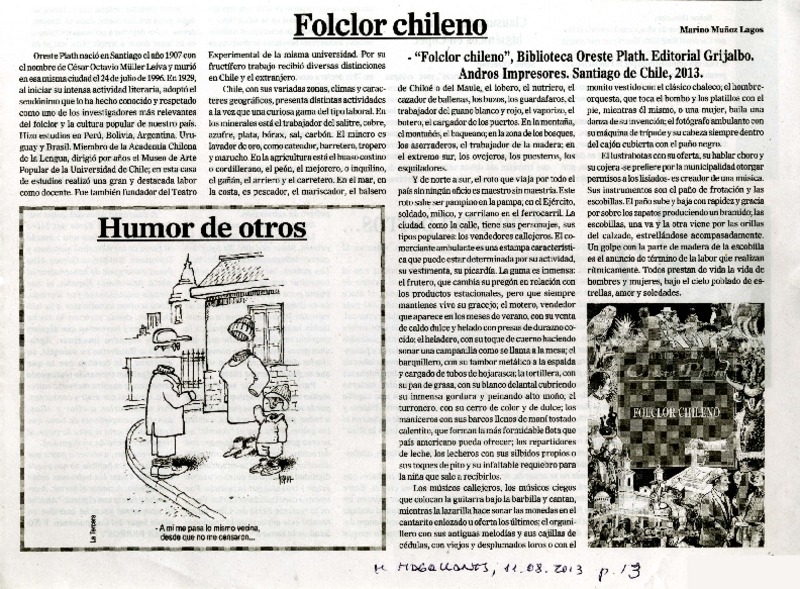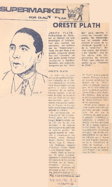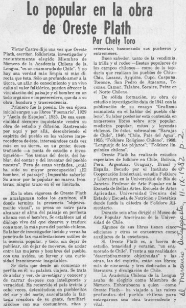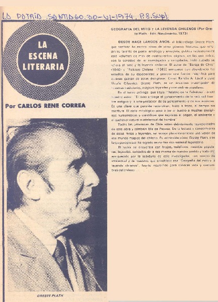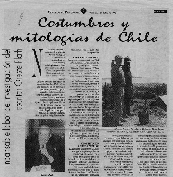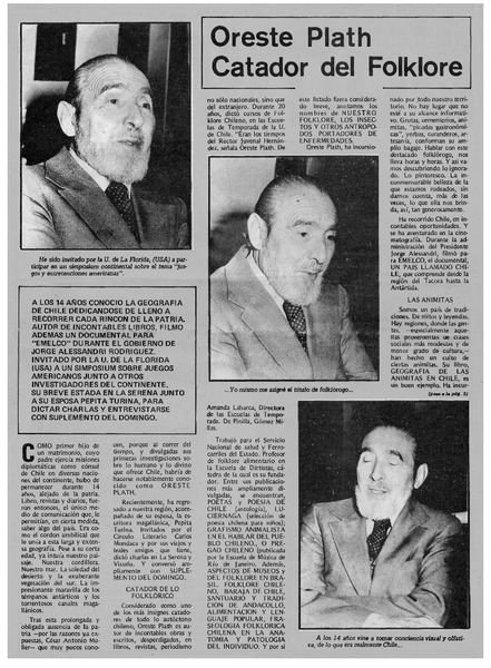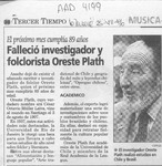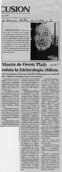 El folclorólogo Oreste Plath [artículo] Marino Muñoz Lagos.