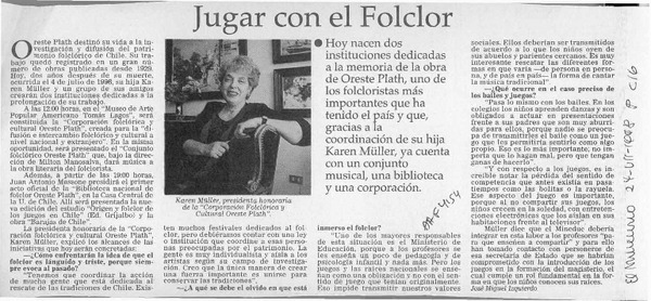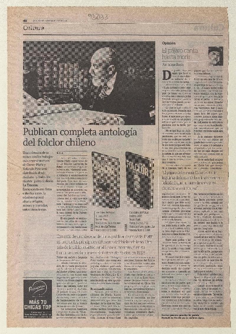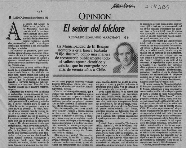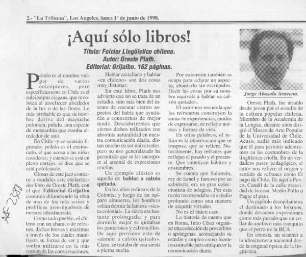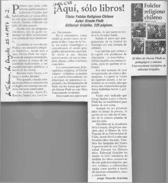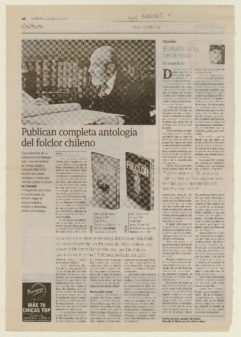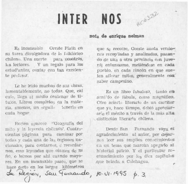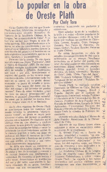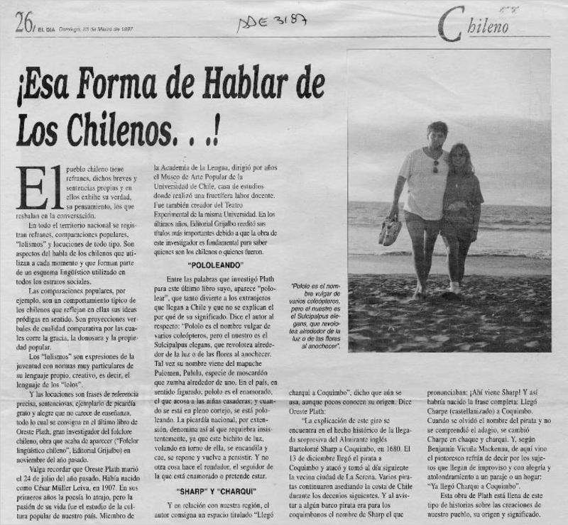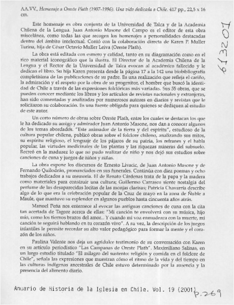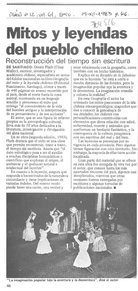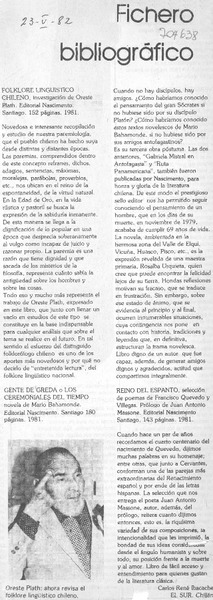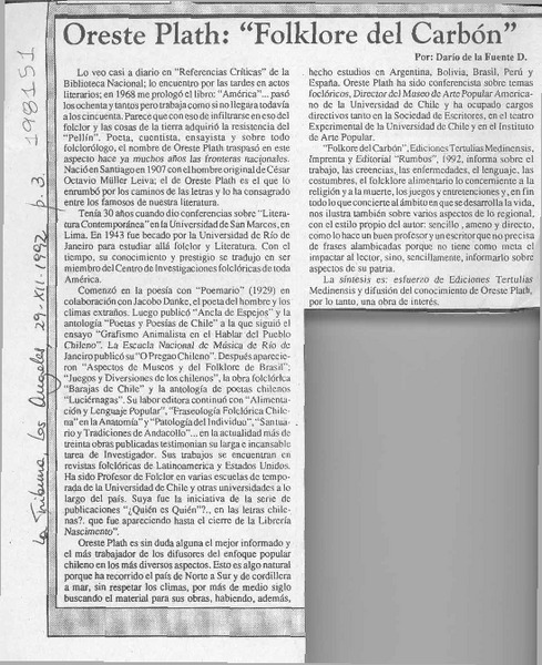 El folclorólogo Oreste Plath [artículo] Marino Muñoz Lagos.