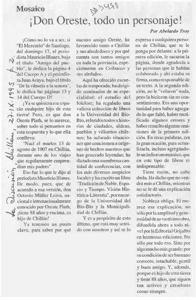 Don Oreste, todo un personaje! [artículo] Abelardo Troy.