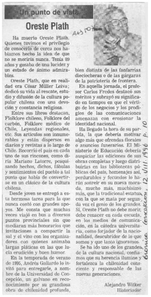 Adiós a Oreste Plath [artículo].