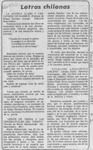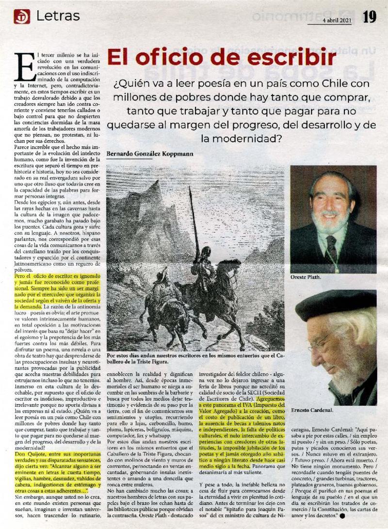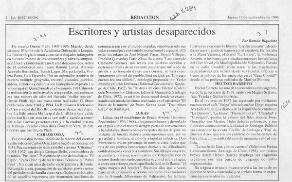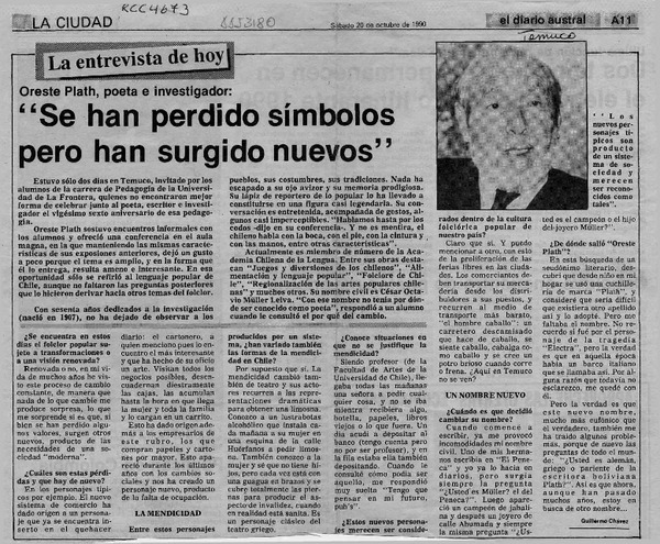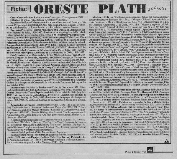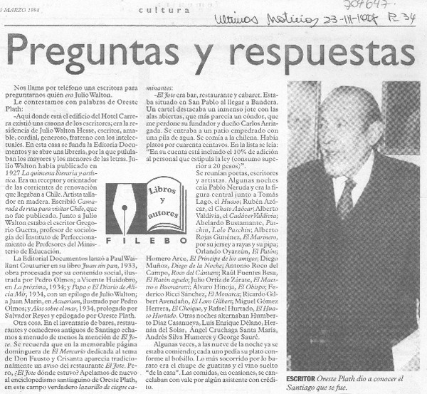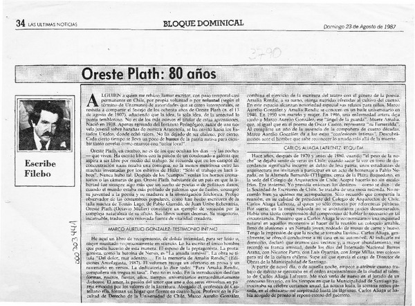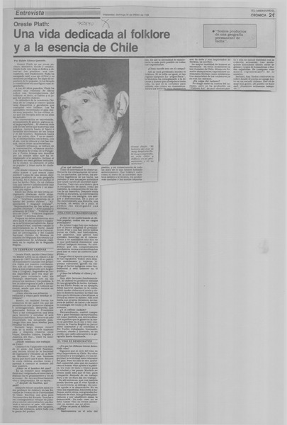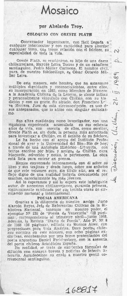 Autores chilenos - Plath, Oreste - entrevista
