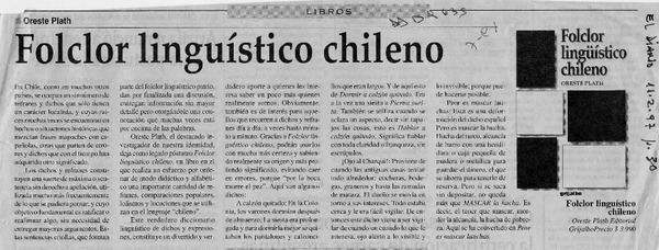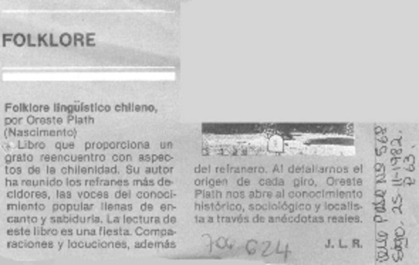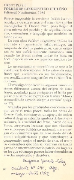 Autores chilenos - Plath, Oreste - Folklore lingüístico chileno