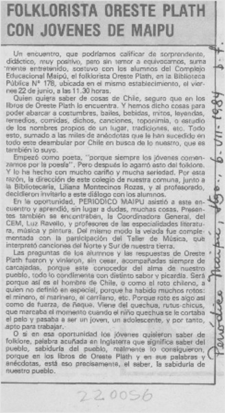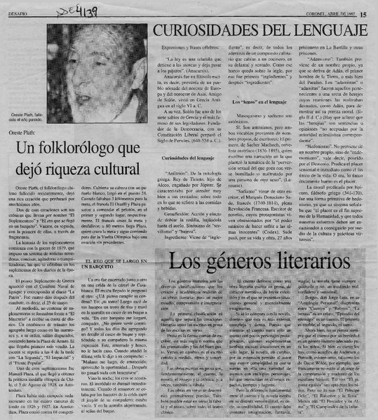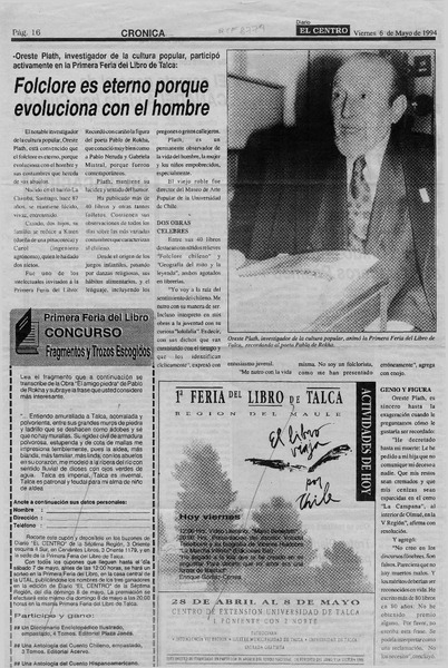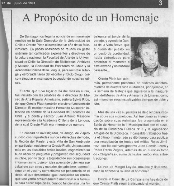 Rindieron homenaje al folclorista Oreste Plath [artículo].