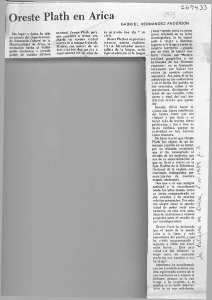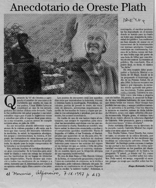 Anecdotario de Oreste Plath [artículo] Hugo Rolando Cortés.