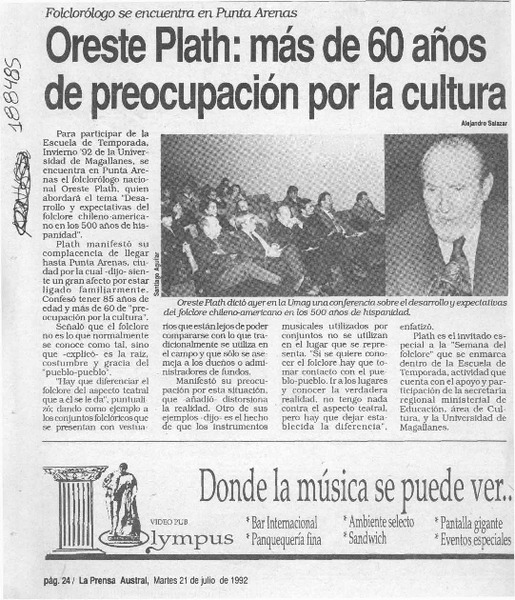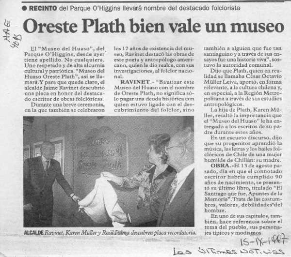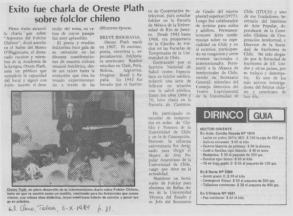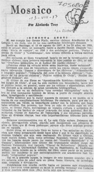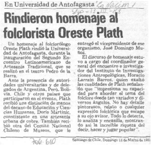 Rindieron homenaje al folclorista Oreste Plath. [artículo]