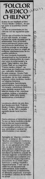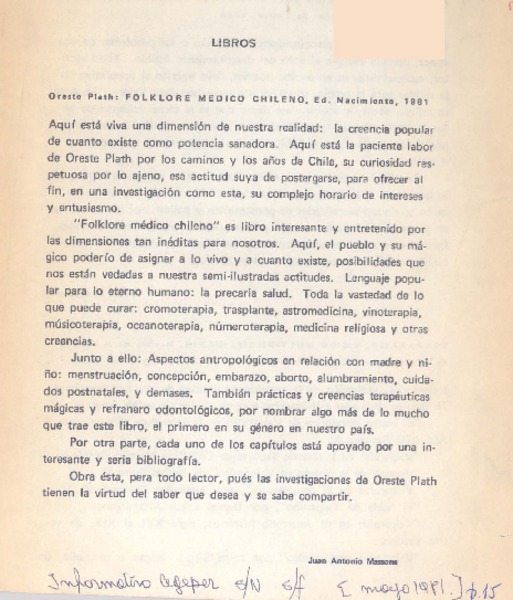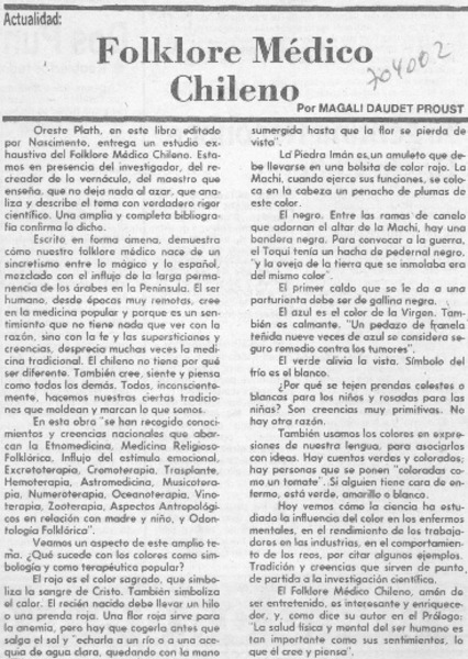 Plath, Oreste - Folklore médico chileno