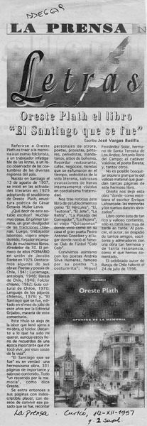 Plath, Oreste - El Santiago que se fue