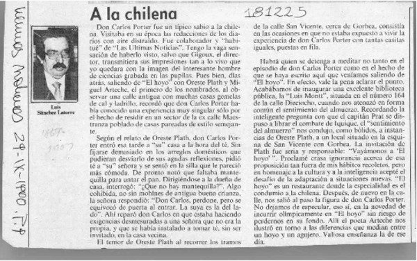 A la chilena [artículo] Luis Sánchez Latorre.
