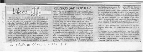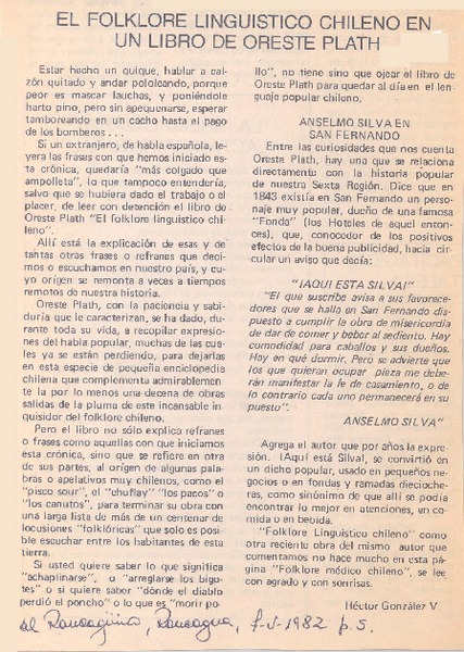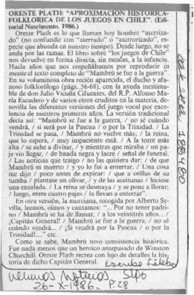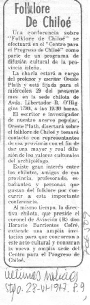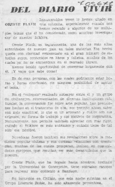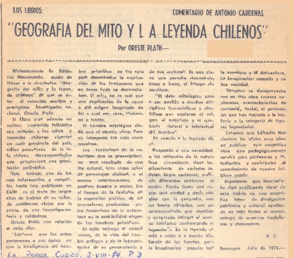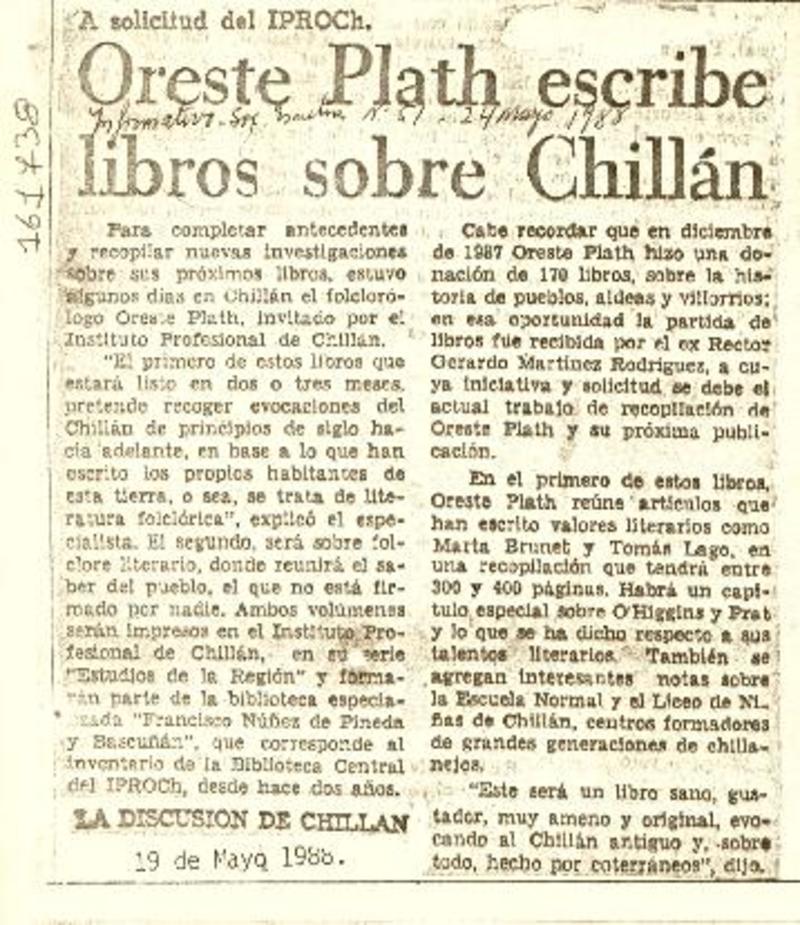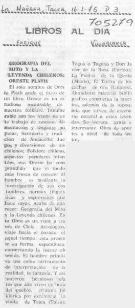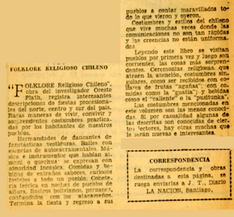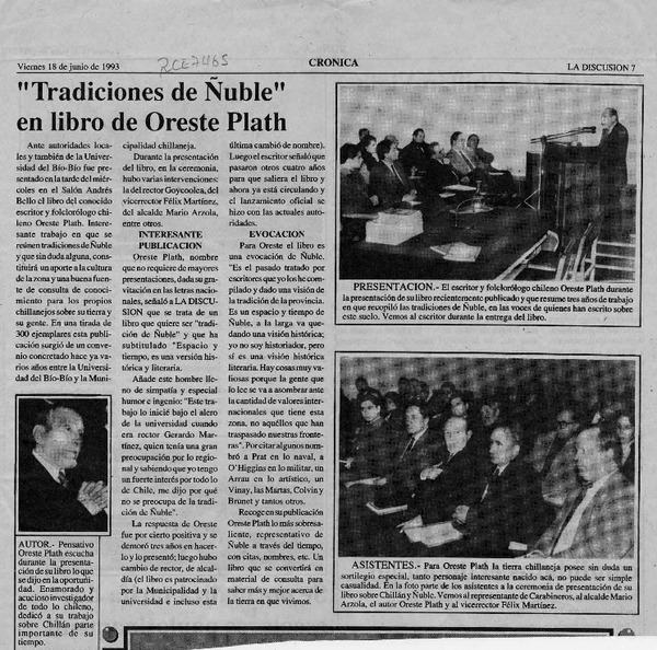 Tradiciones de Ñuble" en libro de Oreste Plath. [artículo]