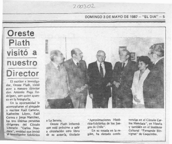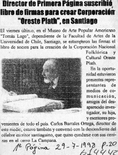 Director de Primera Página suscribió libro de firmas para crear Corporación "Oreste Plath", en Santiago [artículo]
