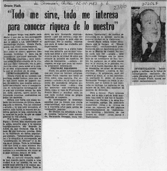 "Todo me sirve, todo me interesa para conocer riqueza de lo nuestro" [artículo].