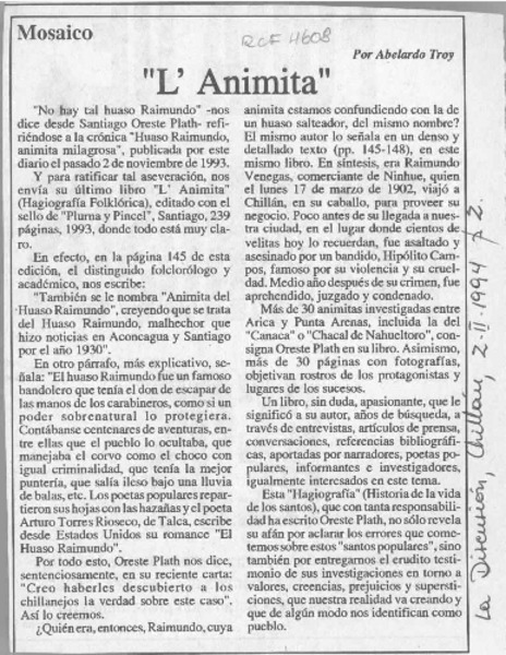 "L'Animita" [artículo] Abelardo Troy.