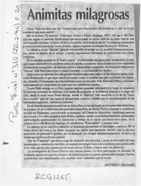 Animitas milagrosas [artículo] Antonio J. Salgado.