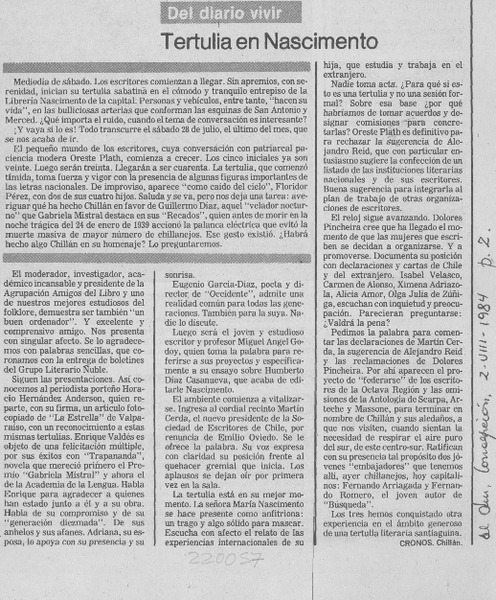 Tertulia en Nascimento [artículo] Cronos.