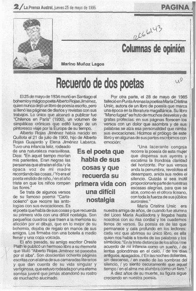 Recuerdo de dos poetas [artículo] Marino Muñoz Lagos.