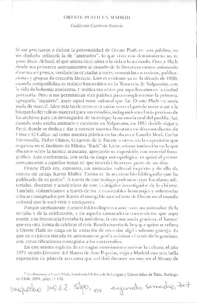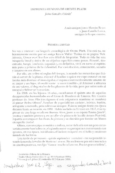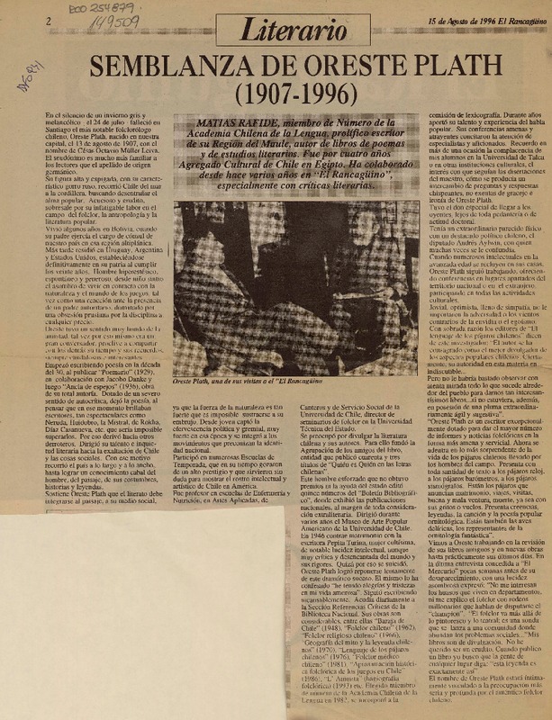 Semblanza de Oreste Plath [artículo] Matías Rafide.