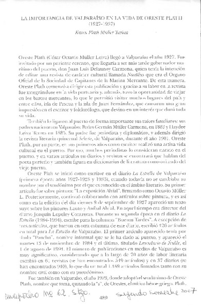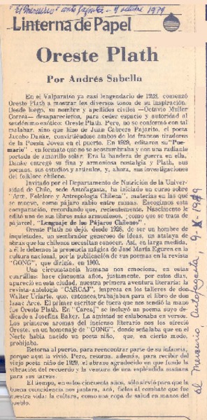 Algo de Oreste Plath [artículo] Juan Rubén Valenzuela.