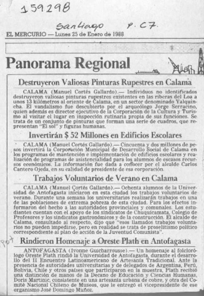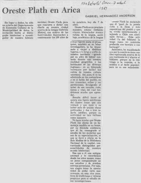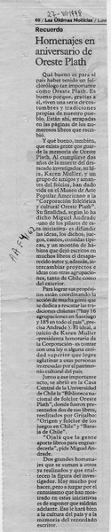 Rindieron homenaje a Oreste Plath en Antofagasta [artículo] Ivonne Guicharrousse.