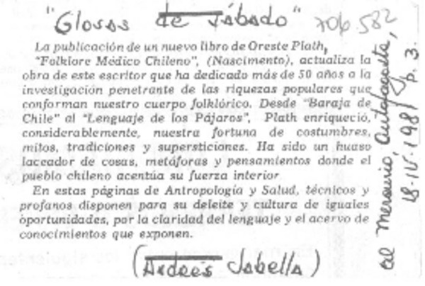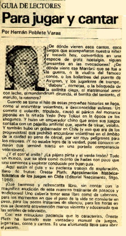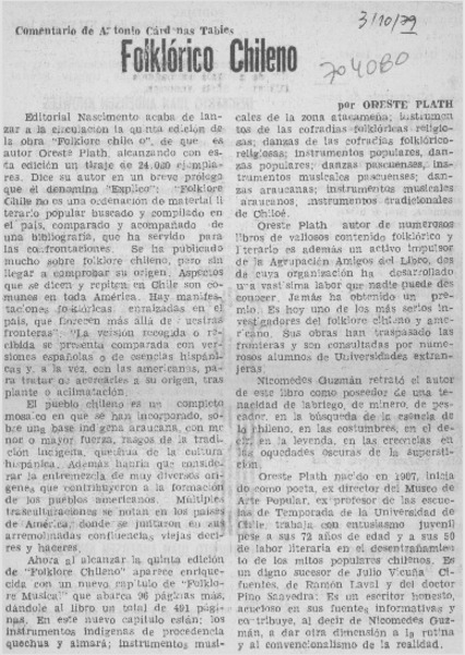 Todo el folclor de Oreste Plath [artículo] Andrés Gómez B.