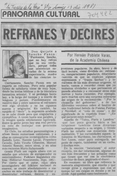 Refranes y decires [artículo] Hernán Poblete Varas.