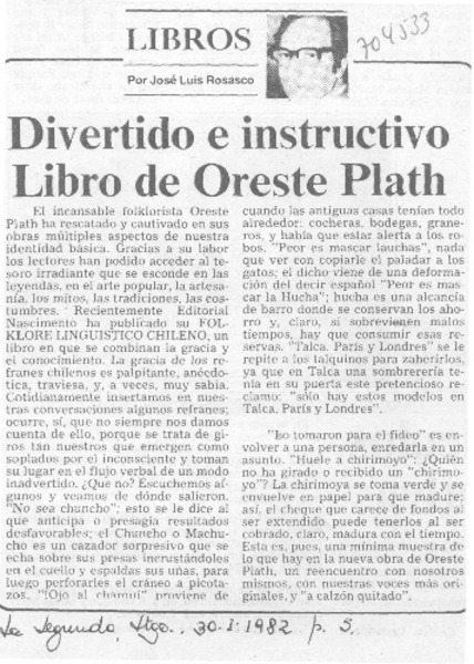 Divertido e instructivo libro de Oreste Plath [artículo] José Luis Rosasco.