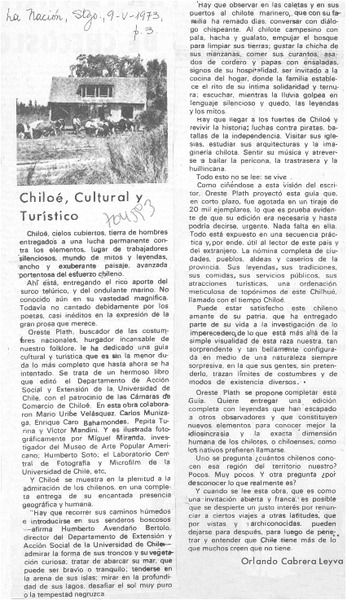 Chiloé, cultural y turístico [artículo] Orlando Cabrera Leyva.
