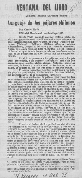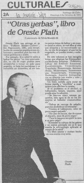 "Otras yerbas", libro de Oreste Plath [artículo] Silvia Morales M.
