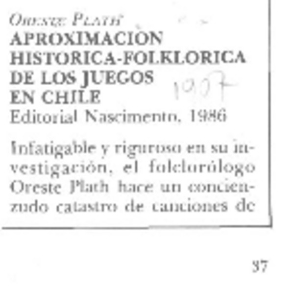 Autores chilenos - Plath, Oreste - Aproximación histórica-folklórica de los juegos en Chile