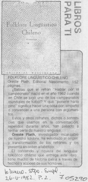 Autores chilenos - Plath, Oreste - Folclor lingüístico chileno