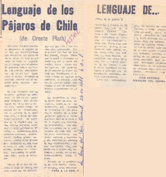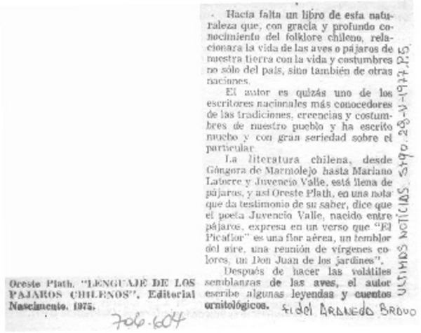 Autores chilenos - Plath, Oreste - Lenguaje de los pájaros chilenos