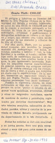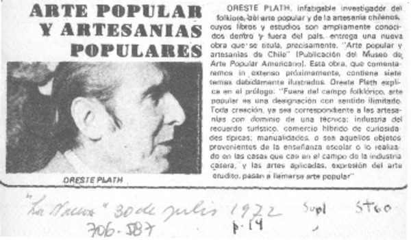 Autores chilenos - Plath, Oreste - Arte popular y artesanías de Chile