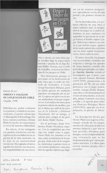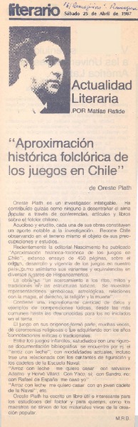 Autores chilenos - Plath, Oreste - Aproximación histórica folclórica de los juegos en Chile