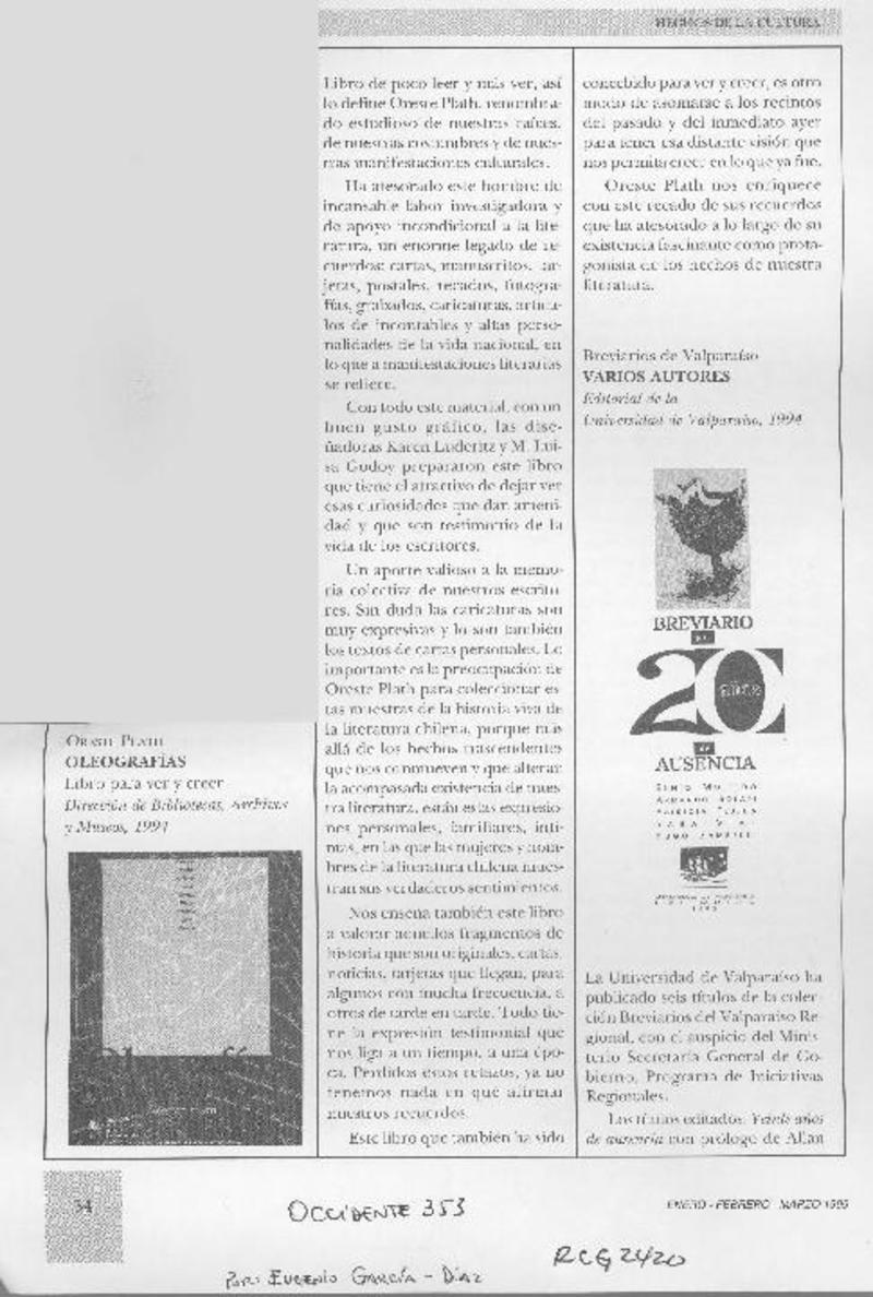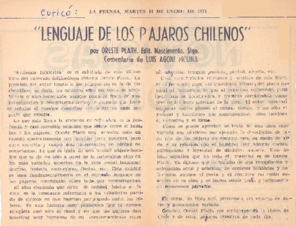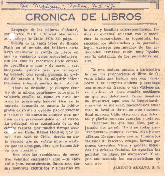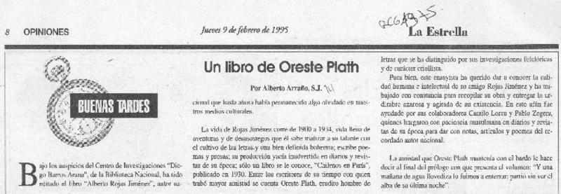 Un libro de Oreste Plath [artículo] Alberto Arraño, S.J.