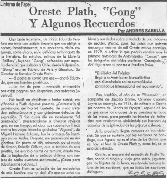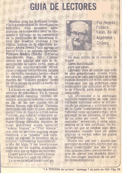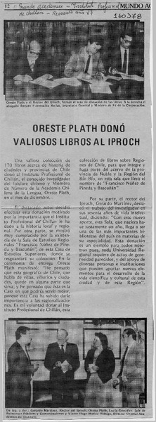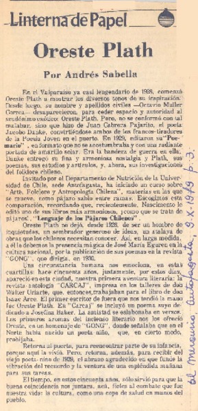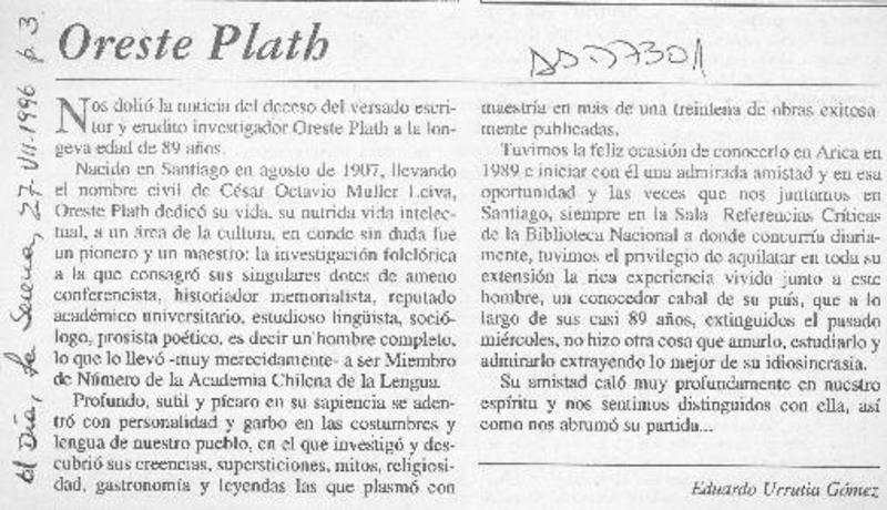 Sabe Ud. ¿quién fue Oreste Plath? [artículo] Hugo Pérez