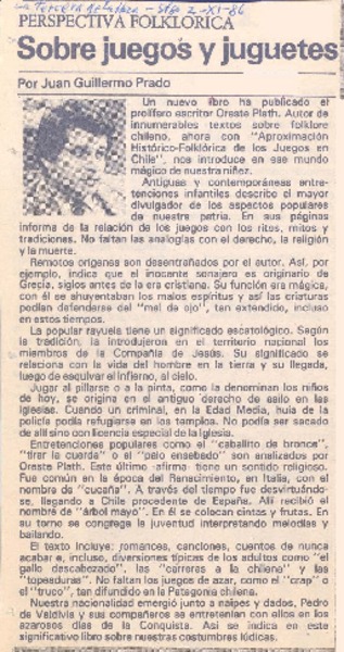 Sobre juegos y juguetes [artículo] Juan Guillermo Prado.