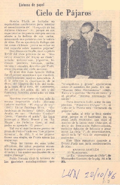 Cielo de pájaros [artículo] Andrés Sabella.