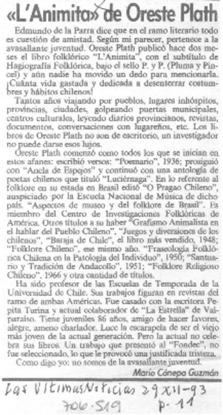 "L'animita" de Oreste Plath [artículo] Mario Cánepa Guzmán.