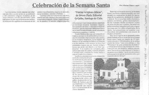 Celebración de la Semana Santa [artículo]Marino Muñoz Lagos.