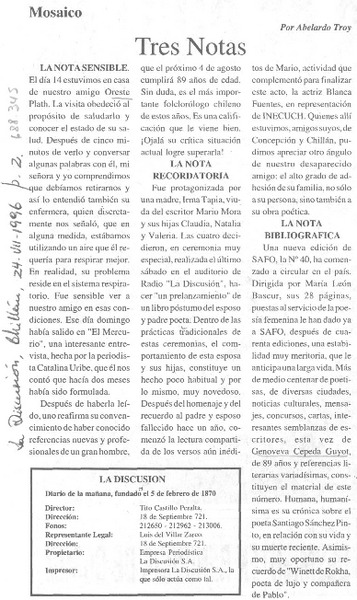 Tres notas [artículo] Abelardo Troy.