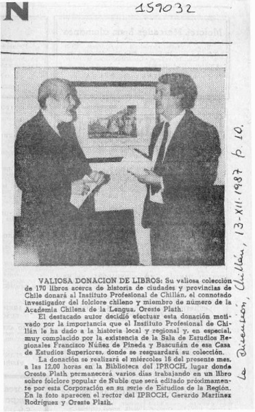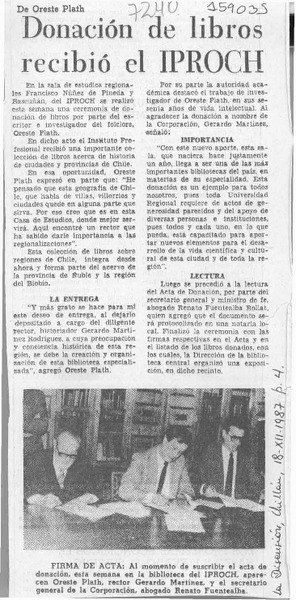 Donación de libros recibió el IPROCH [artículo].