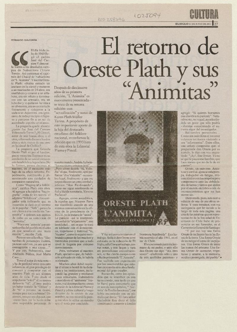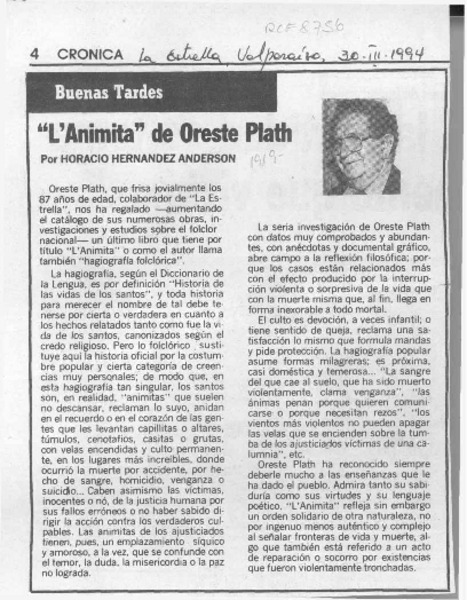 "L'Animita" de Oreste Plath [artículo] Horacio Hernández Anderson.