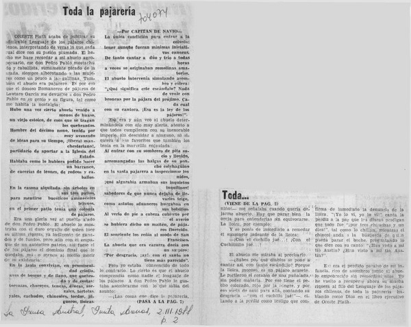 Toda la pajarería. [artículo]