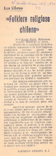 Autores chilenos - Plath, Oreste - Folclor religioso chileno