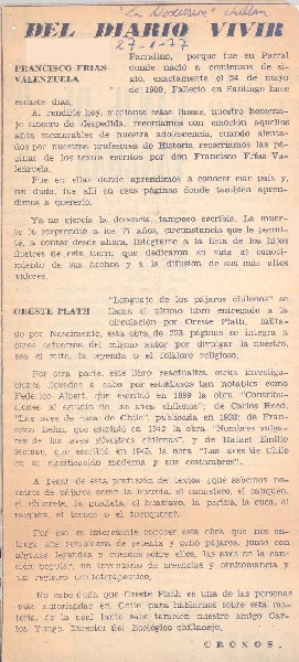Adiós a don Oreste [artículo] Fernando Arriagada Cortés.